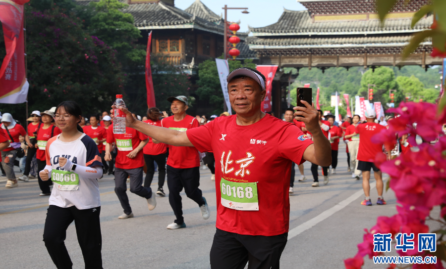 此次赛事,与正赛同步举行的还有“景区天天运动会”。主办方在起点处专门规划场地,设置了呼啦圈竞走、跳绳挑战、乒乓大战、打糍粑等趣味运动项目。不少游客刚到景区,就投入到快乐运动的体验之中。
