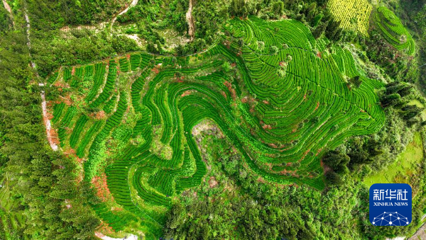 4月16日拍摄的贵州省铜仁市江口县九龙山茶园(无人机照片)。新华社记者 欧东衢 摄