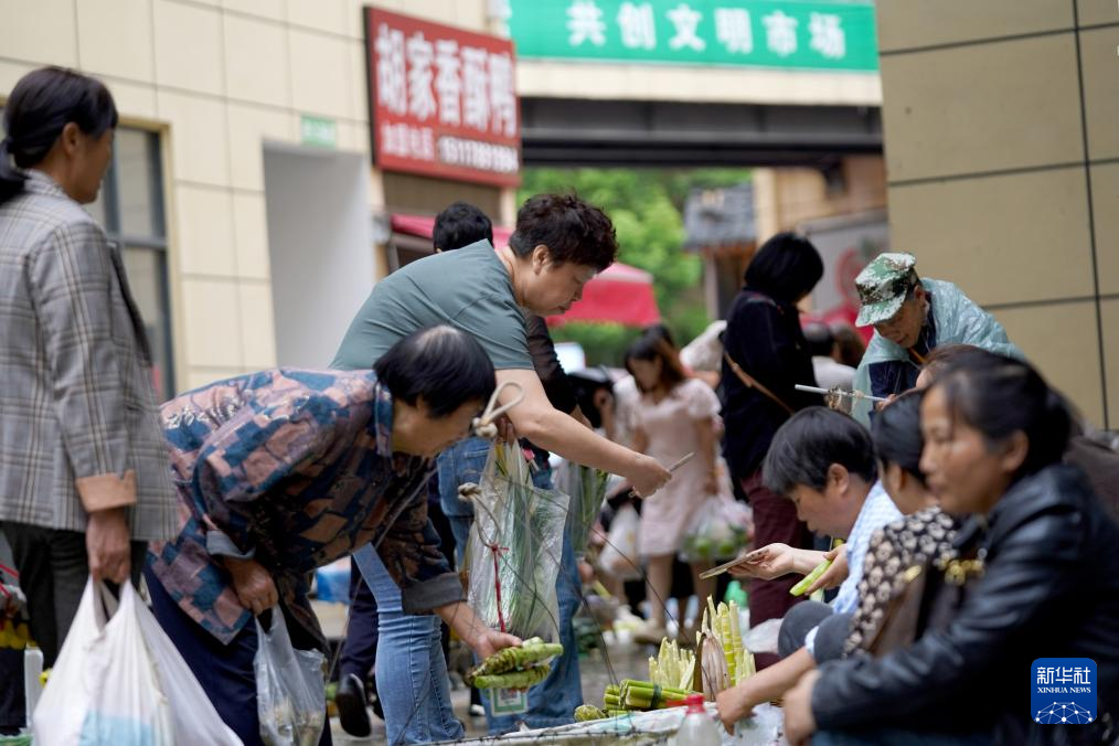 2025年5月23日,市民在贵州省龙里县农贸市场设立的便民早市选购蔬菜。(王立信 摄)