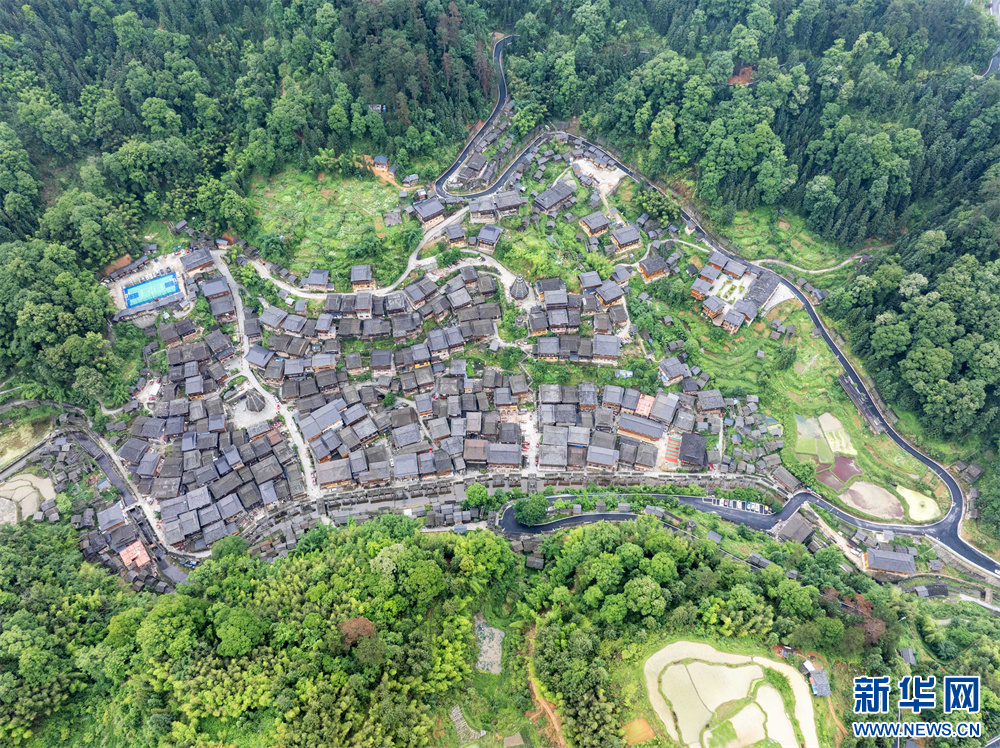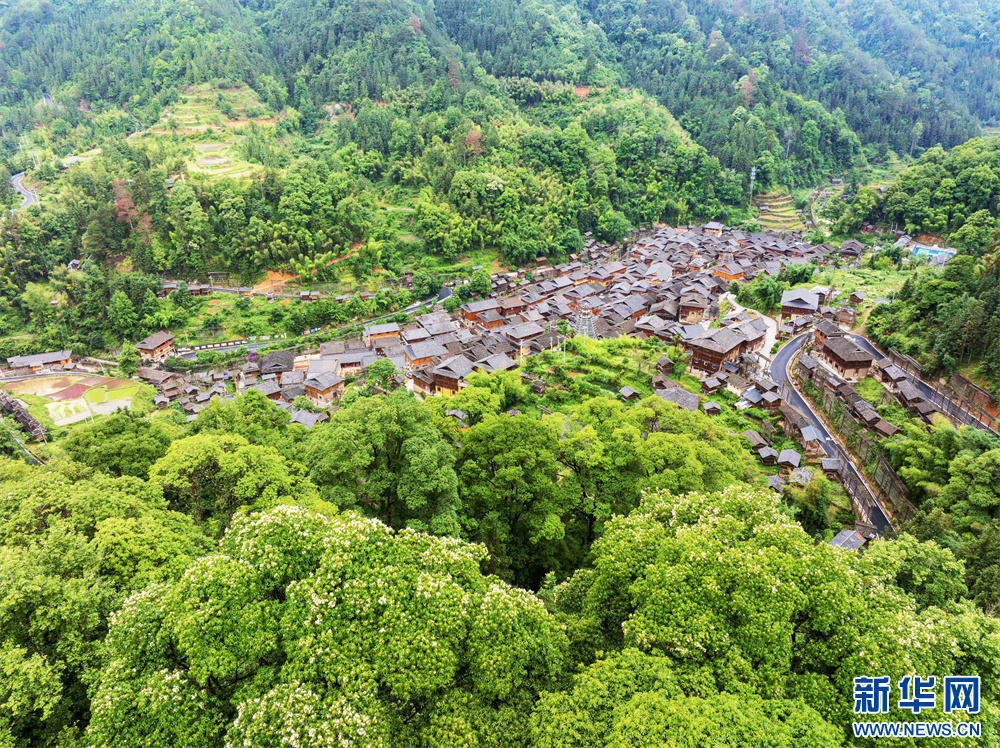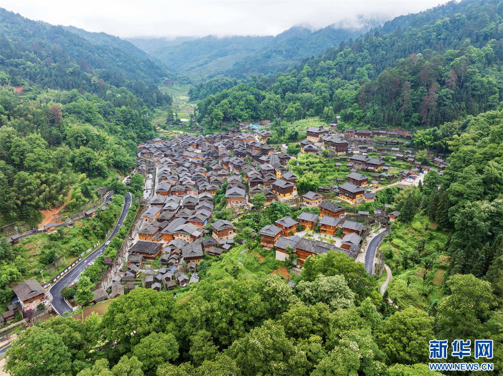 5月26日,贵州省从江县高增乡占里侗寨景色宜人(无人机照片)。新华网发(吴德军 摄)