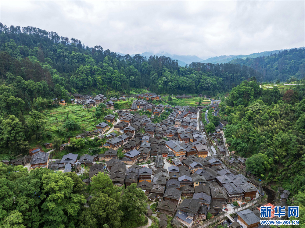 初夏时节,贵州省黔东南苗族侗族自治州从江县高增乡传统村落占里侗寨景色宜人,古色古香的吊脚楼民居、绿水青山、侗族鼓楼等交相辉映,构成一幅美丽的乡村画卷。