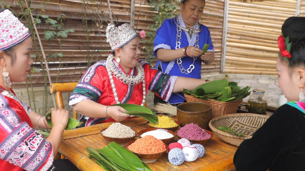 端午节临近,贵州省黔东南苗族侗族自治州台江县的苗族同胞们开始制作五彩粽,用传统美食迎接节日的到来。