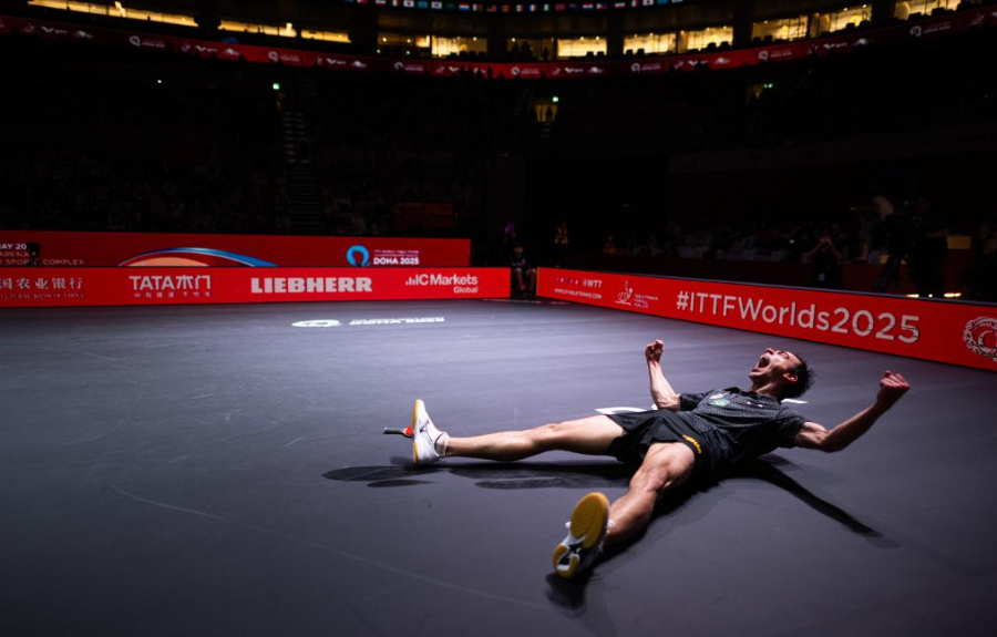 5月25日,多哈,45摄氏度高温,2025世乒赛决赛硝烟正烈。上万名来自中国的球迷让卢赛尔体育馆人声鼎沸,他们手举五星红旗,热情如同沙漠中的热浪。一名当地人和我说:“我从来没见过这么多的中国人!”
