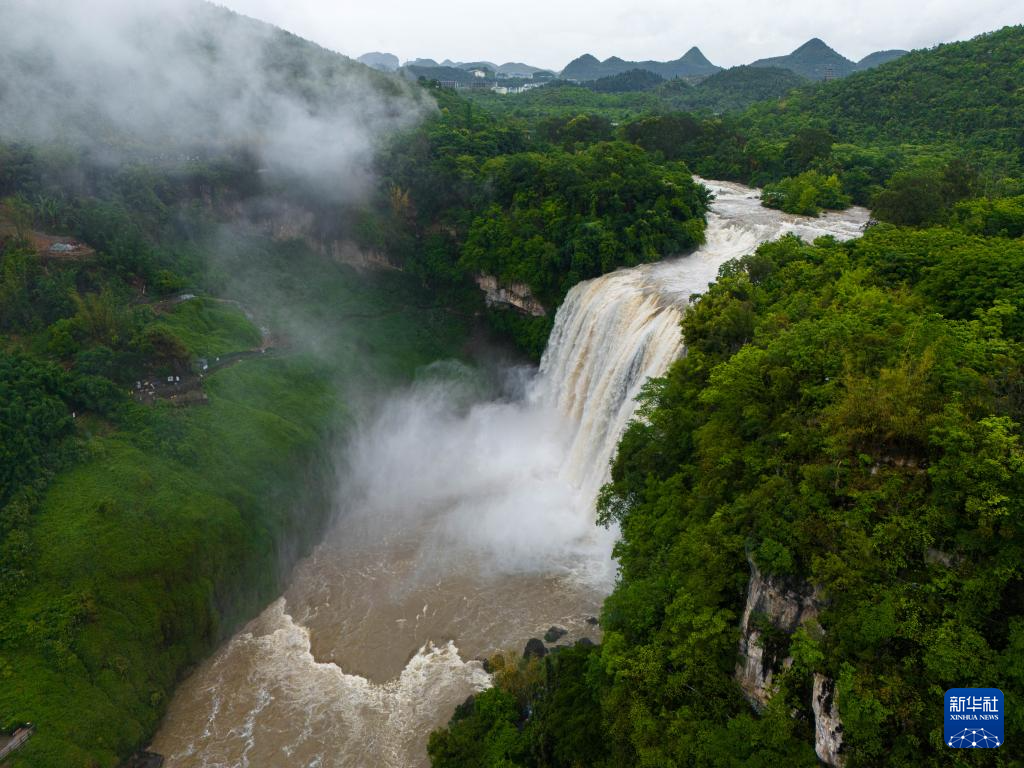 近日,位于贵州省安顺市的黄果树瀑布逐渐进入最佳观赏期,瀑布奔腾而下,蔚为壮观。