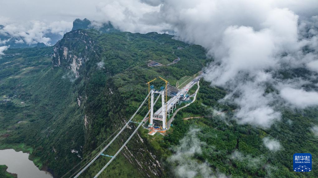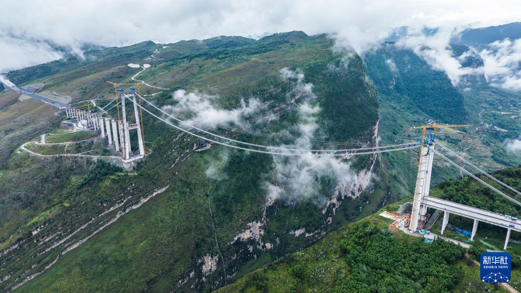 眼下,由中铁广州局承建的贵州安(安顺)盘(盘州)高速天门特大桥正抢抓工期,加紧建设,有序推进边跨索夹安装。